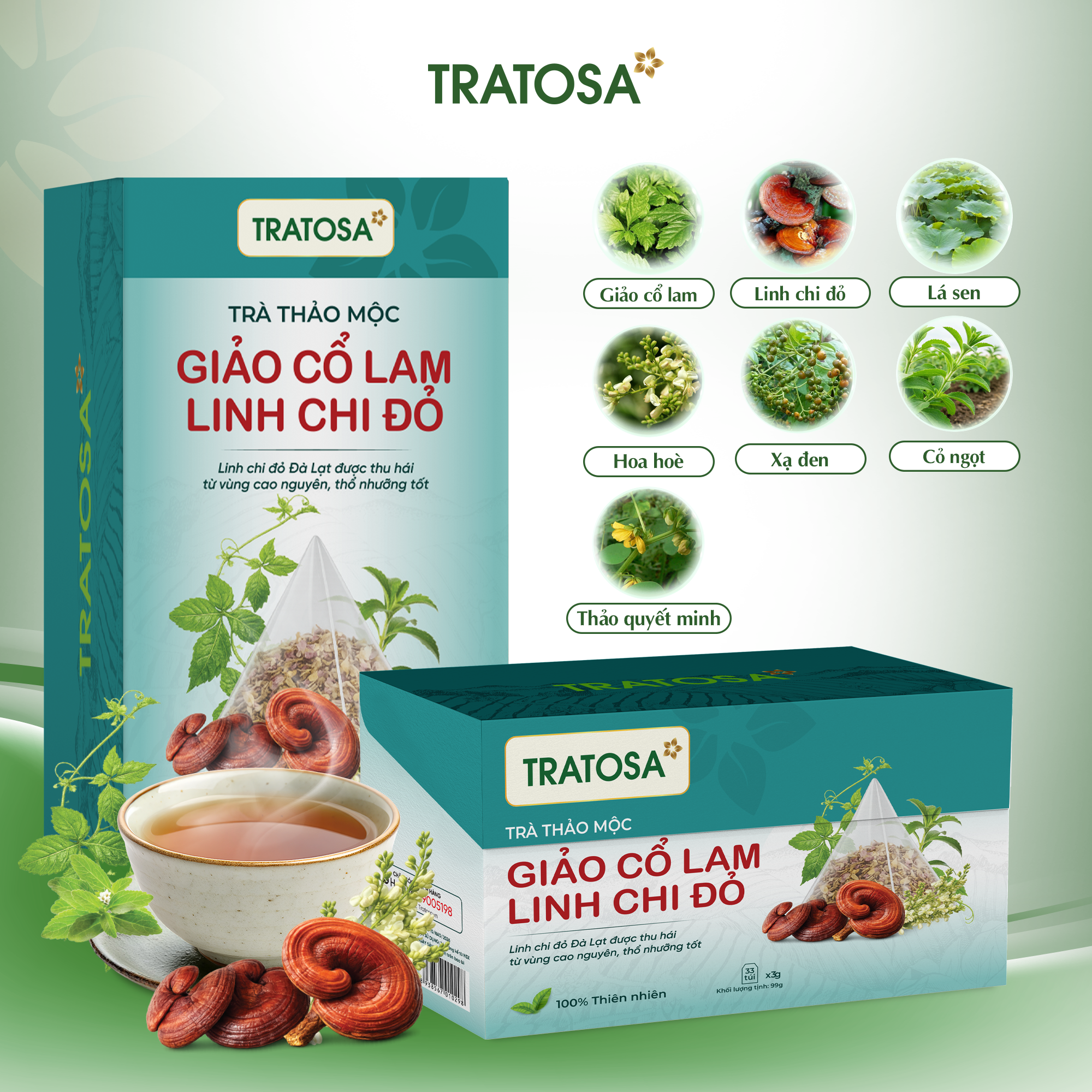 Từ sự thấu hiểu về những nỗi lo toan của người trưởng thành khi các chỉ số mỡ máu và huyết áp có sự thay đổi, TRATOSA đã cho ra đời dòng trà Giảo Cổ Lam Linh Chi Đỏ Đà Lạt., được phát triển kế thừa từ tinh hoa cổ phương, bài thuốc dân gian và những dược liệu thiên nhiên được chọn lọc kỹ lưỡng, đến giải pháp chăm sóc sức khỏe an toàn từ thiên nhiên giúp cơ thể thanh lọc và duy trì trạng thái nhẹ nhõm hơn mỗi ngày.